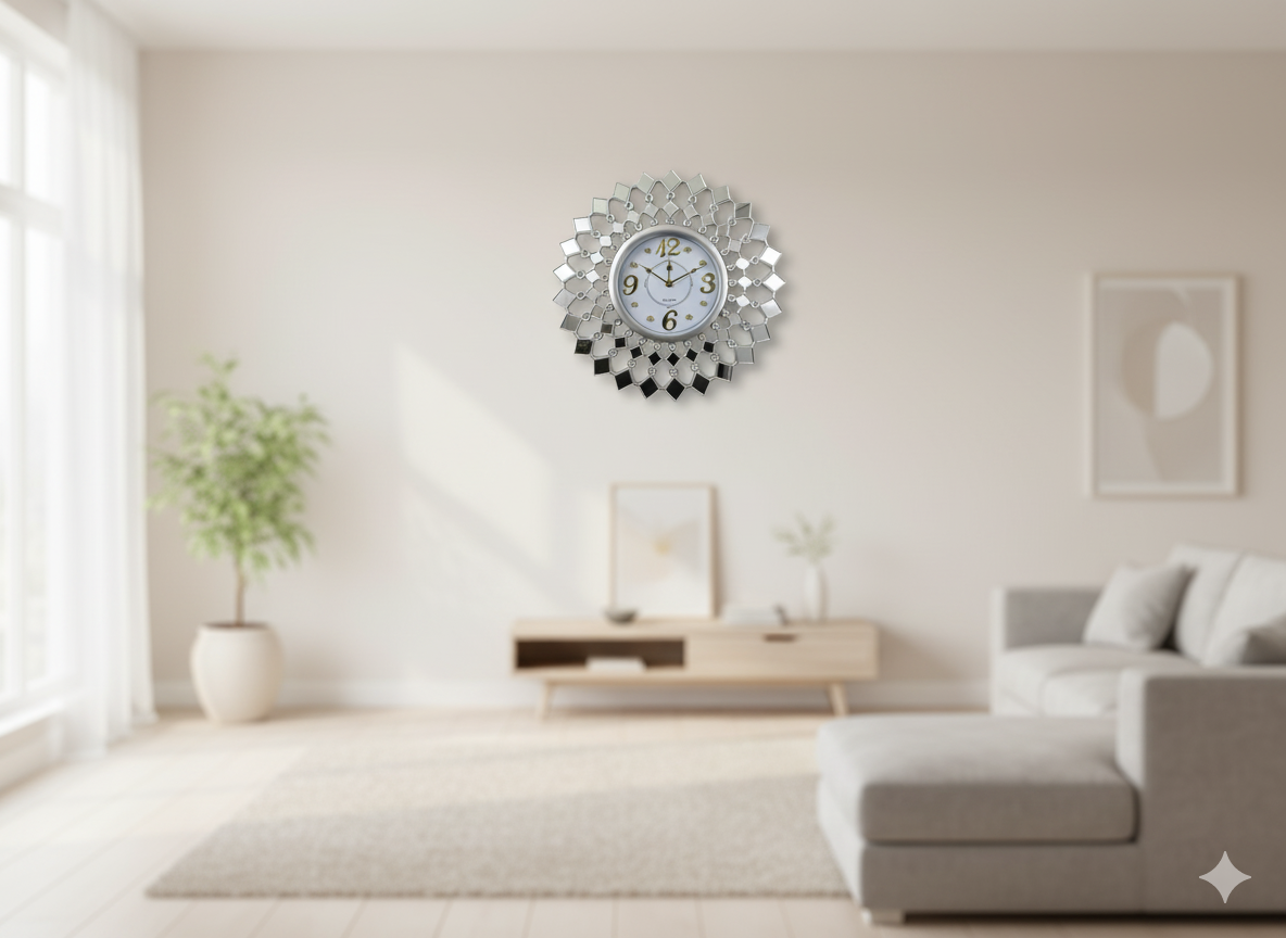আধুনিক ইন্টেরিয়র স্টাইলের সাথে মিলিয়ে তৈরি এই ঘড়িটি জ্যামিতিক ডায়মন্ড প্যাটার্ন ও স্টোন ডেকোরেশনের সমন্বয়ে অত্যন্ত আকর্ষণীয়। যে কোনো ঘরের দেয়ালে এটি তৈরি করে ভিন্নরকম শিল্পময় লুক।
